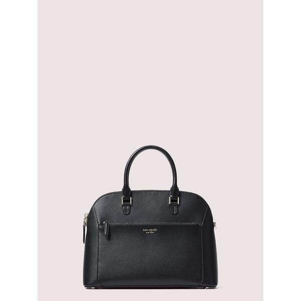 Description: domed bags are kind of our thing. louise is the newest (and possibly most functional) addition to the collection. done in our new saffiano leather, its soft texture is nice to touch and durable against drops and scratches so it’ll keep its sleek, luxe look. intentional angular stitching draws your eyes to the convenient zipper and magnetic snap slip pockets at the front and back that’ll give easy access to your phone(s) and metrocard. inside, a zipper pocket and snap-tab slip pocket organize all your essentials, and the spade flower jacquard-lined interior is roomy enough to fit even your biggest wallet. the optional and adjustable strap ensures a comfortable commute to work, class or your brunch place.