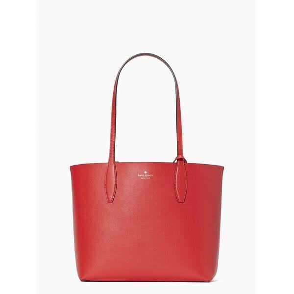 Description: you know this tote holds your everyday stuff like a wallet, keys, phone, sunglasses. it also holds: two red lipsticks, $6 in change, 11 crumpled receipts, an avocado