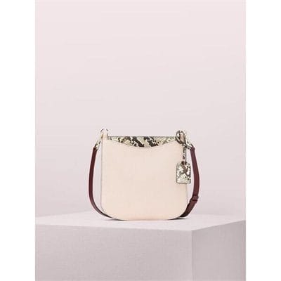 Description: our margaux embossed snake large crossbody is defined by its curved feminine silhouette and functional interior. made from refined grain and snakeskin-embossed leather, it features two slip pockets on the outside with even more storage space inside. the adjustable crossbody strap has pretty, jewelry-like hardware. and the leather luggage tag is finished with an enamel spade, our signature mark.