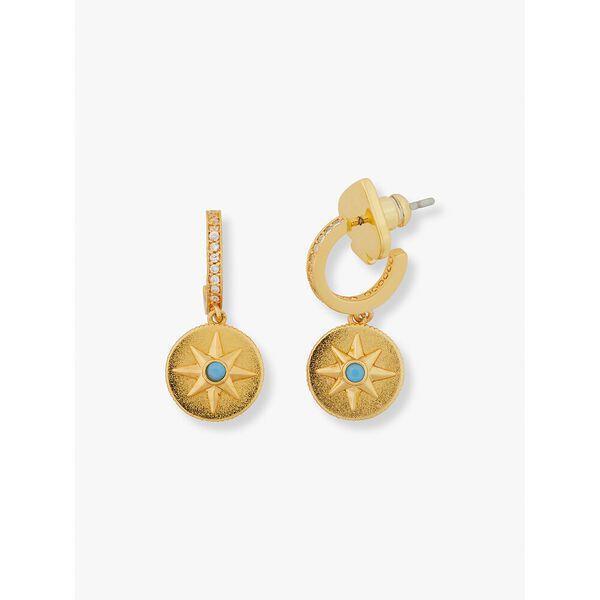 Description: ooh, aren’t these huggies so charm-ing? strung with shiny medallions, they’re the kind you can wear every day for that touch of je ne sais quoi…