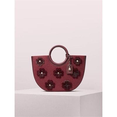 Description: in 2014, we began working with a group of 150+ talented artisans in masoro, rwanda. since then, these women have built a thriving self-run business and they produce all of our on purpose label bags, like this felt circle tote appliquéd with crinkled faux patent leather and calf hair flowers. their success is re-shaping the lives of 20,000 people in their community. it’s just the first stop in our on purpose journey.