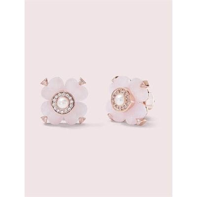 Description: you’ve seen our spade flowers printed on our clothing, handbags, scarves…almost everything, really. so of course we reimagined them on these studs in rose gold-tone metal and rose quartz. a faux pearl center and pavé detailing add a touch of sophisticated sparkle.