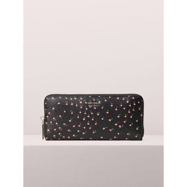 Description: here’s a printed wallet to hold your cards, cash and change for years to come. don’t let the slim profile fool you: lots of pockets and compartments inside give you plenty of space to organize. it’s made from durable faux leather in our meadow print to keep it in pristine condition, too.