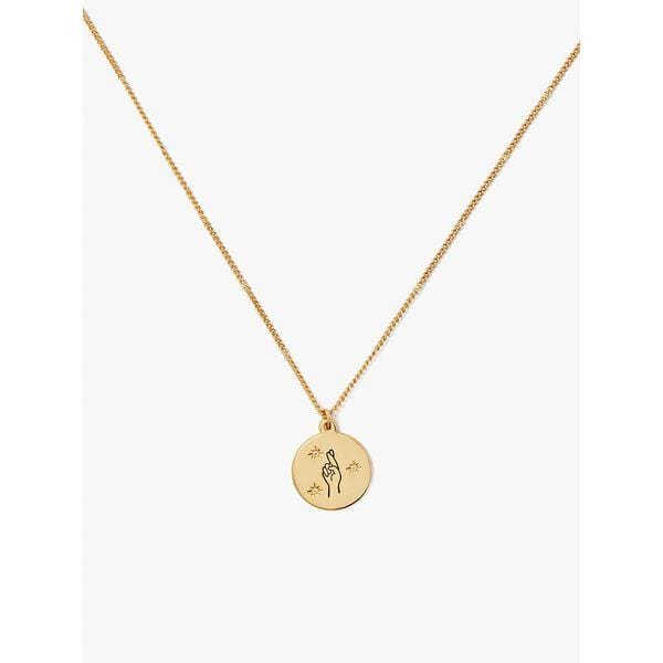 Description: remember: things will be okay! this shiny rose gold-tone necklace with a crossed fingers pendant will serve as a daily reminder.